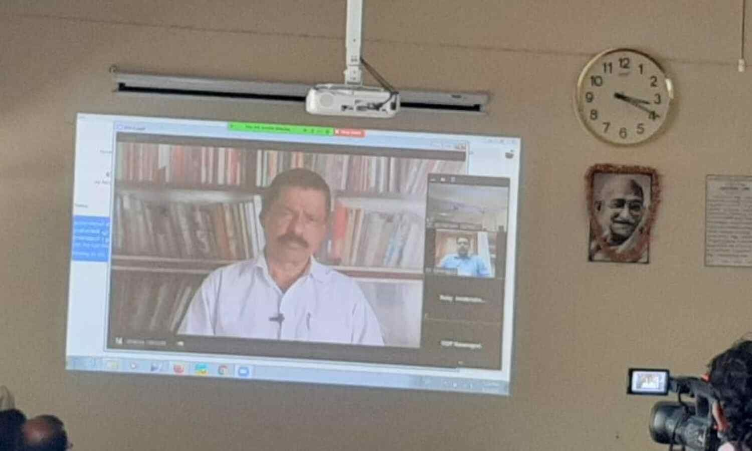 ചട്ടഞ്ചാലിലെ ഓക്സിജന് പ്ലാന്റിന്റെ ശിലാസ്ഥാപനം മന്ത്രി എം വി ഗോവിന്ദന് ഓണ്ലൈനില് നിര്വഹിക്കുന്നു