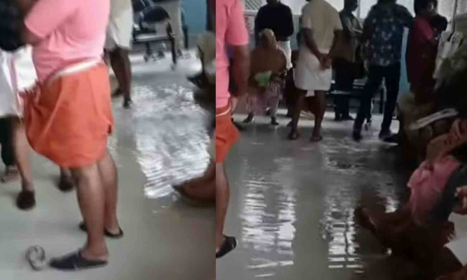 നിര്മ്മാണ പ്രവര്ത്തനങ്ങളുടെ ഭാഗമായി പോസ്റ്റുകള് മാറ്റിയപ്പോള് കല്ലുകളും മറ്റും ഓടയിലാണ് ഇട്ടത്. ഓടയിലെ ഒഴുക്ക് തടസപ്പെടുകയും പൈപ്പ് പൊട്ടുകയും ചെയ്തു. ഇതേത്തുടര്ന്ന് വെള്ളം ആശുപത്രിക്കകത്തേക്ക് പ്രവേശിക്കുകയായിരുന്നു.