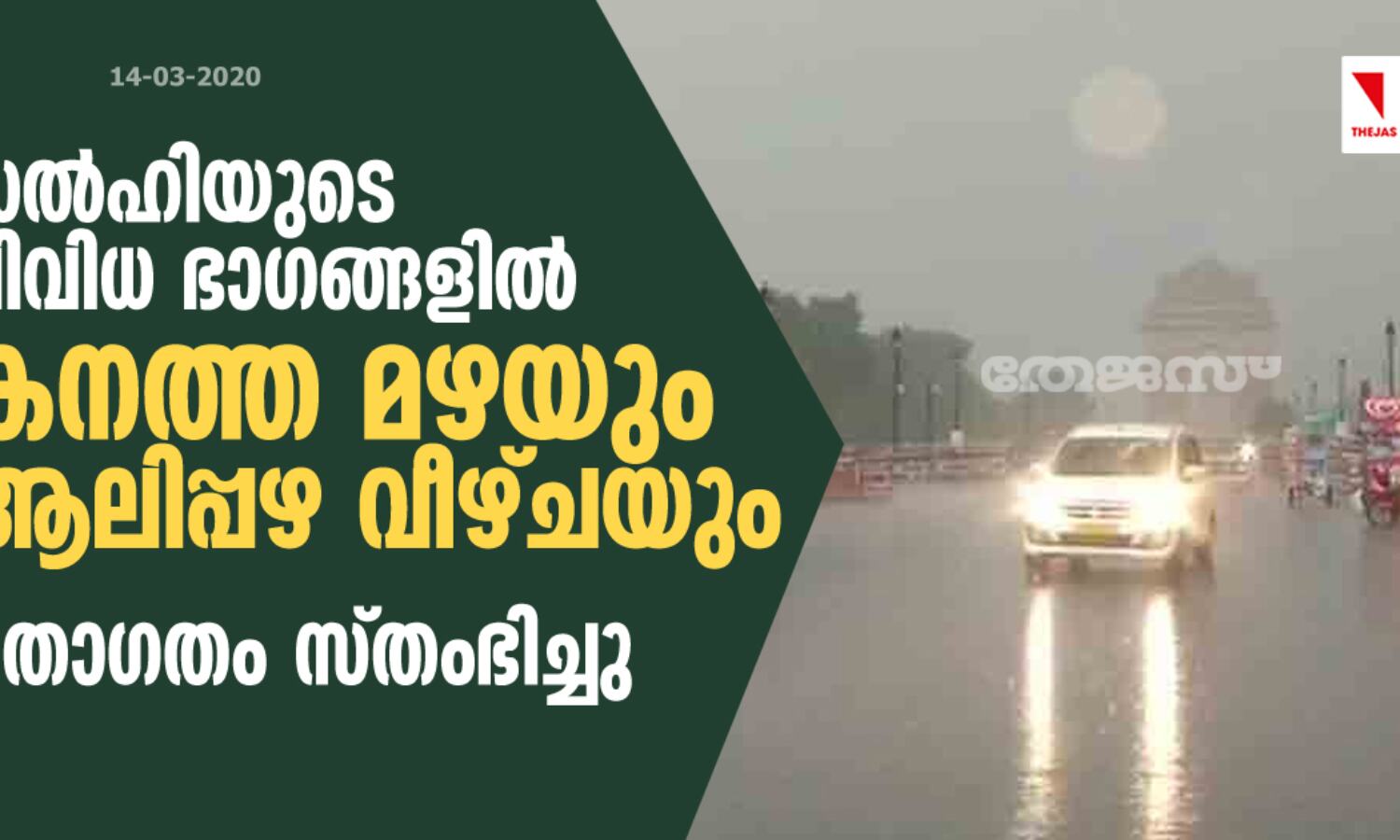 ഡല്ഹിയുടെ വിവിധഭാഗങ്ങളില് കനത്ത മഴയും ആലിപ്പഴ വര്ഷവും; ഗതാഗതം സ്തംഭിച്ചു