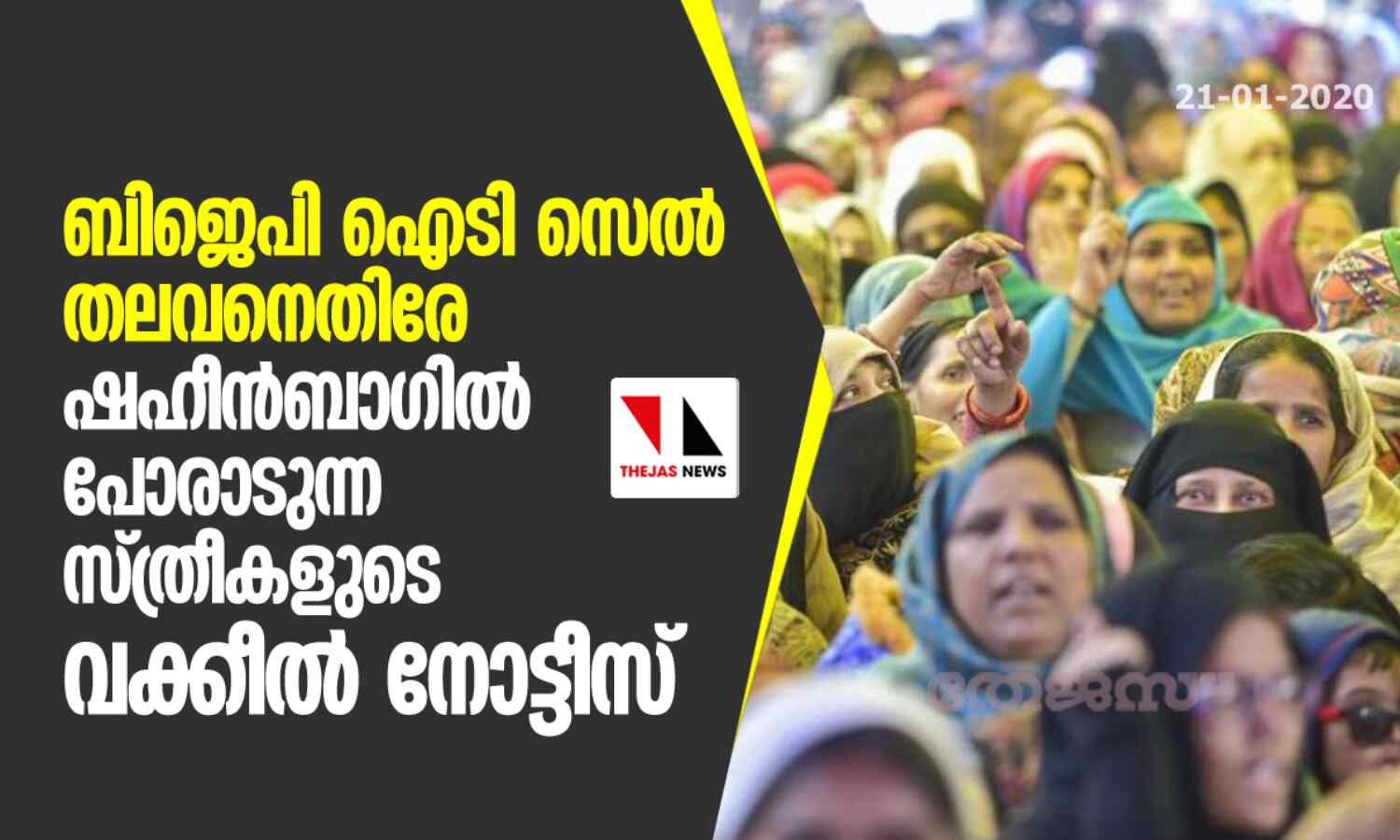 ബിജെപി ഐടി സെല് തലവനെതിരേ ഷഹീന്ബാഗിൽ പോരാടുന്ന സ്ത്രീകളുടെ വക്കീല് നോട്ടീസ്