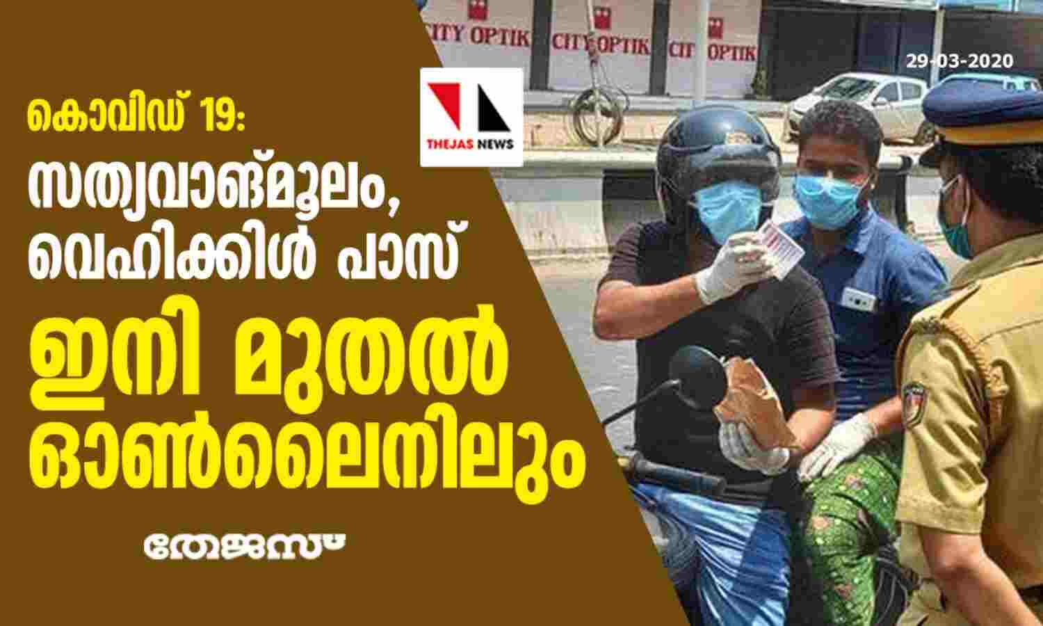 കൊവിഡ് 19: സത്യവാങ്മൂലം, വെഹിക്കിള് പാസ് ഇനി മുതല് ഓണ്ലൈനിലും