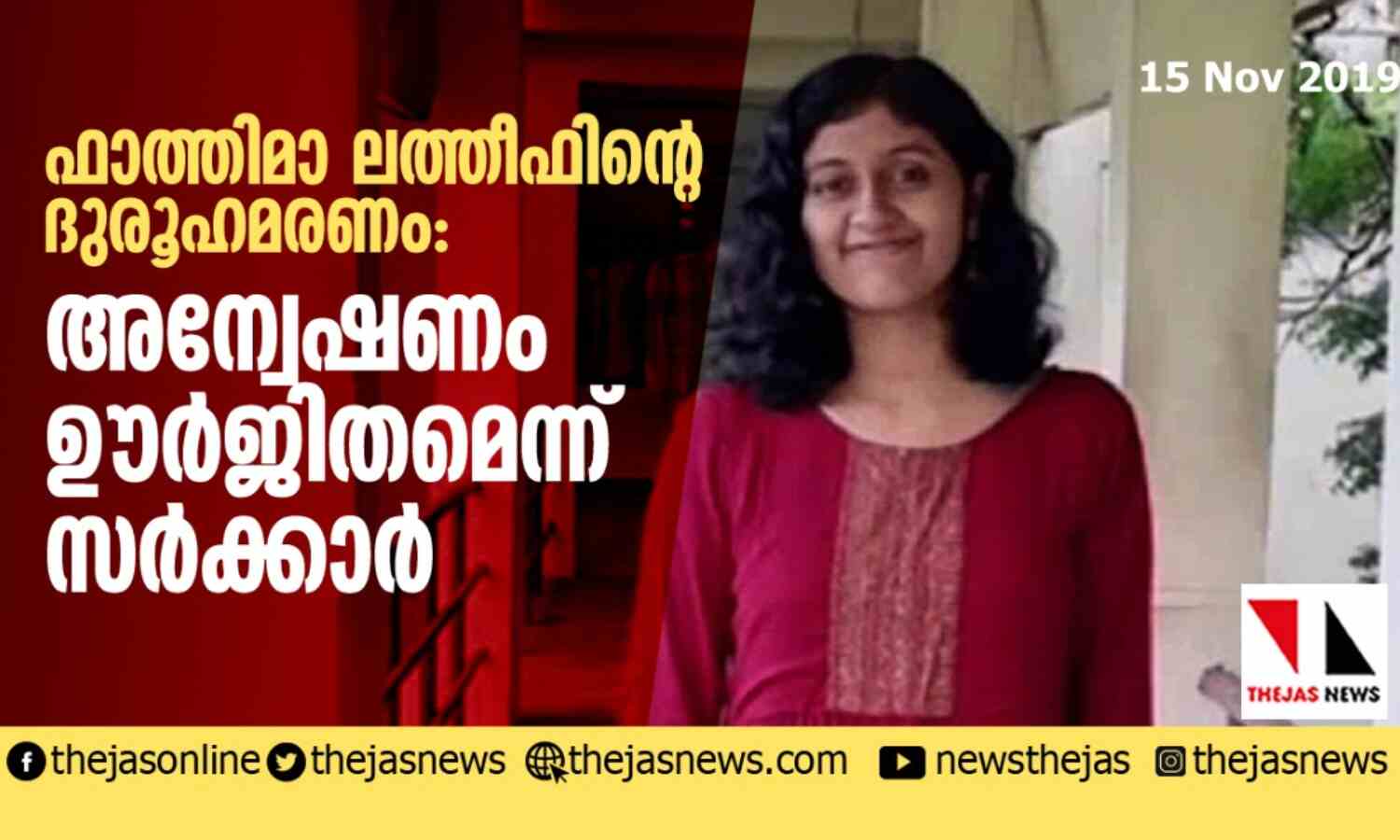 ഫാത്തിമാ ലത്തീഫിന്റെ ദുരൂഹമരണം: അന്വേഷണം ഊർജ്ജിതമെന്ന് സർക്കാർ