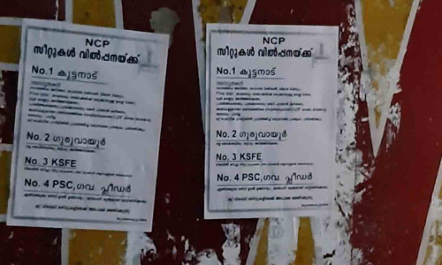 കുട്ടനാട് ഉപതിരഞ്ഞെടുപ്പ്: സ്ഥാനാര്ഥി നിര്ണയത്തെച്ചൊല്ലി എന്സിപിയില് ഭിന്നത രൂക്ഷം; കൊച്ചിയില് വ്യാപക പോസ്റ്ററുകള്