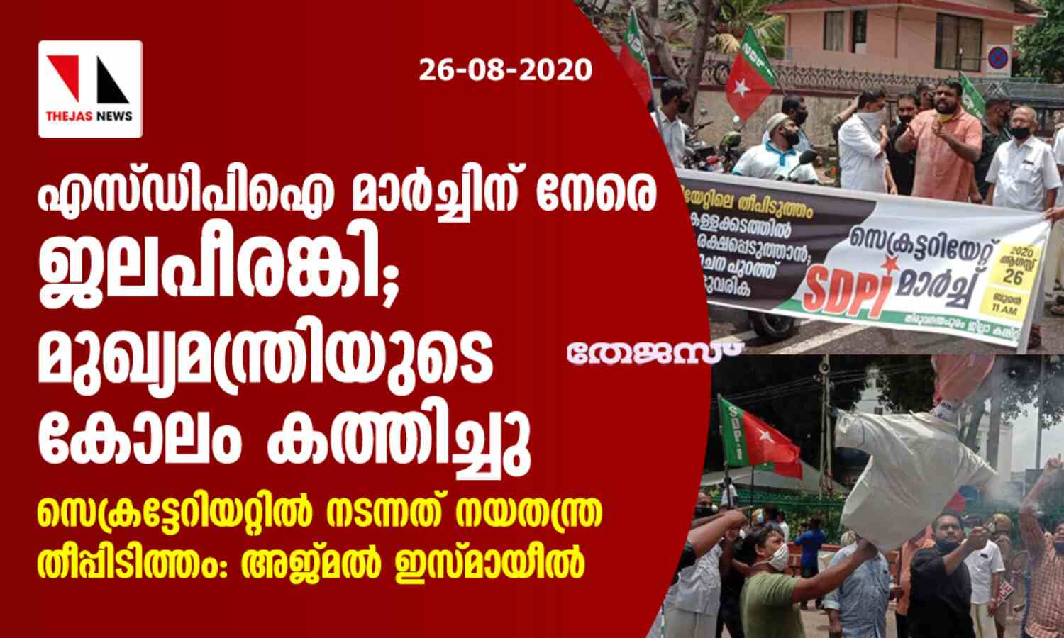 സെക്രട്ടേറിയറ്റ് തീപ്പിടിത്തം: എസ്ഡിപിഐ മാർച്ചിന് നേരെ ജലപീരങ്കി; മുഖ്യമന്ത്രിയുടെ കോലം കത്തിച്ചു