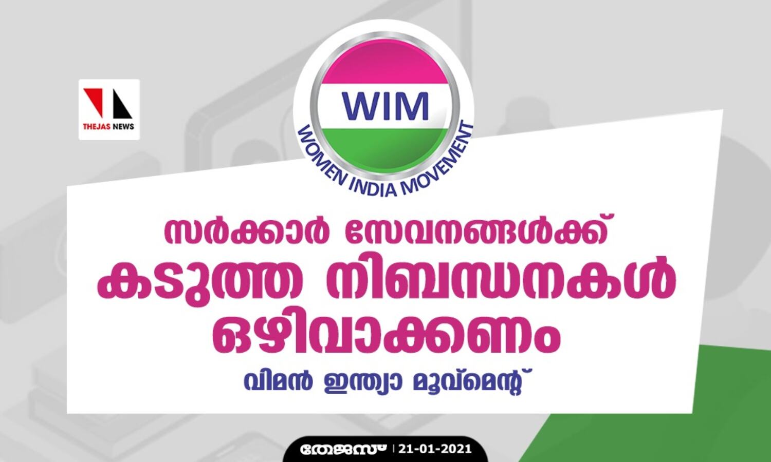 സര്ക്കാര് സേവനങ്ങള്ക്ക് കടുത്ത നിബന്ധനകള് ഒഴിവാക്കണം: വിമന് ഇന്ത്യാമുവ്മെന്റ്