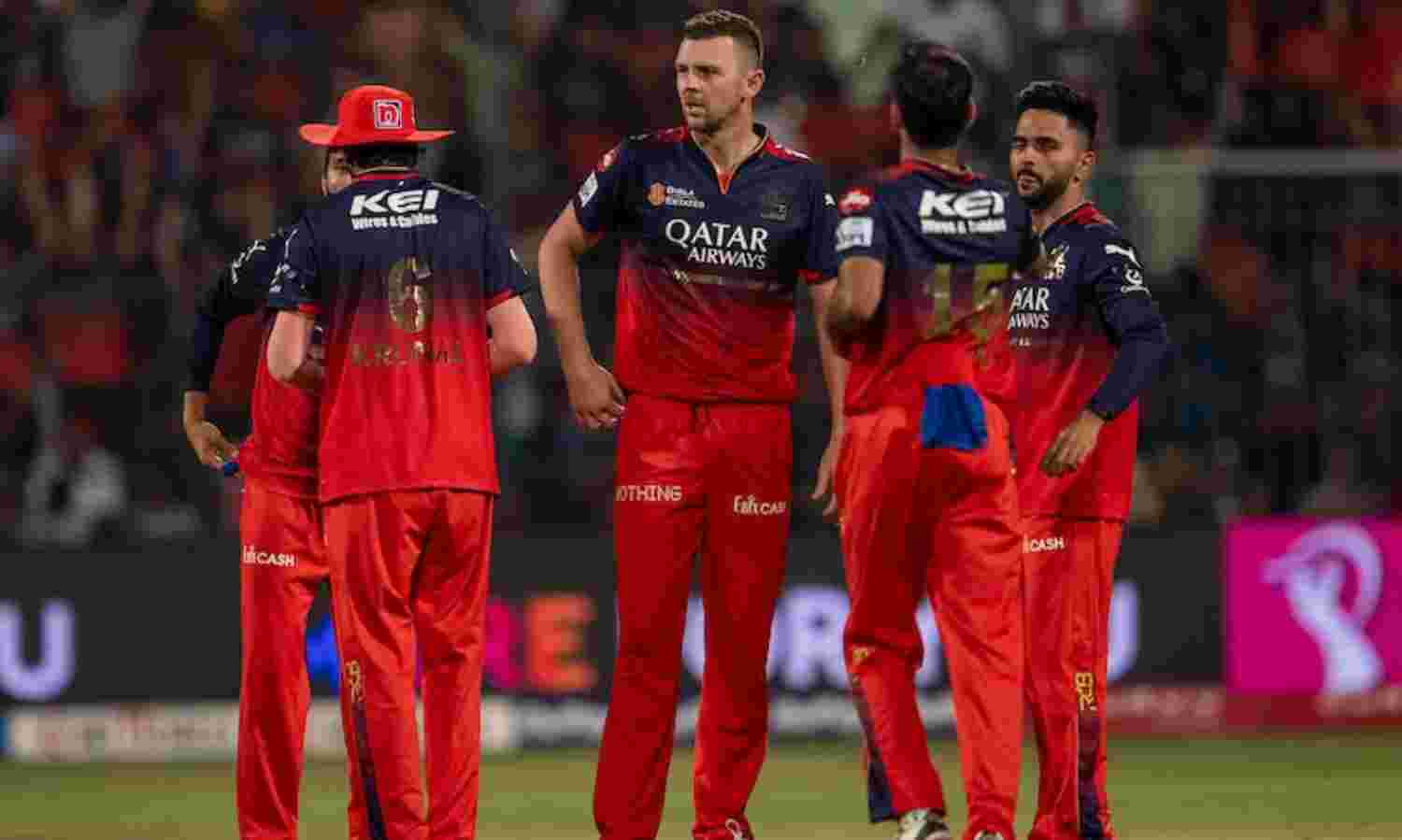 യഷ് ദയാലിന്റെ ആദ്യ പന്തില് തന്നെ ശുഭം ദുബെ (12) മടങ്ങി. മൂന്നാം പന്തില് വാനിന്ദു ഹസരങ്ക (1) റണ്ണൗട്ടായി. ഇതോടെ രാജസ്ഥാന് തോല്വി ഉറപ്പിച്ചു. ഫസല്ഹഖ് ഫാറൂഖി (1), തുഷാര് ദേഷ്പാണ്ഡെ (1) പുറത്താവാതെ നിന്നു. മികച്ച തുടക്കമാണ് ആര്സിബിക്ക് ലഭിച്ചത്. ഒന്നാം വിക്കറ്റില് ഫിലിപ്പ് സാള്ട്ട് (26) കോഹ്ലി സഖ്യം 61 റണ്സ് ചേര്ത്തു. ഏഴാം ഓവറിലാണ് കൂട്ടുകെട്ട് പൊളിയുന്നത്. സാള്ട്ടിനെ പുറത്താക്കി വാനിന്ദു ഹസരങ്കയാണ് ബ്രേക്ക് ത്രൂ നല്കിയത്.