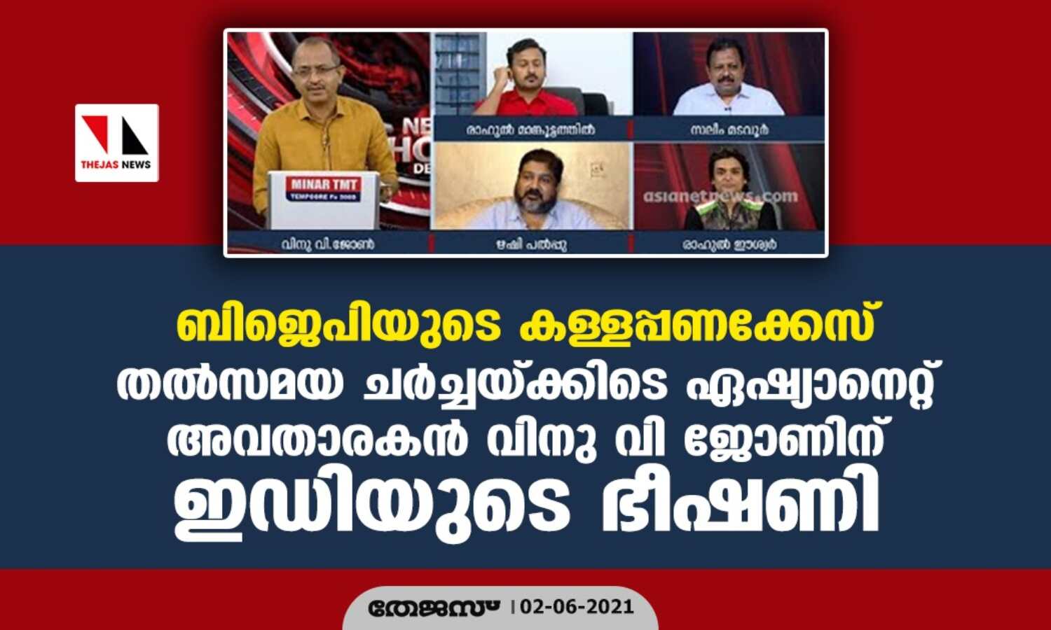 ബിജെപിയുടെ കള്ളപ്പണക്കേസ്; തല്സമയ ചര്ച്ചയ്ക്കിടെ ഏഷ്യാനെറ്റ് അവതാരകന് വിനു വി ജോണിന് ഇഡിയുടെ ഭീഷണി