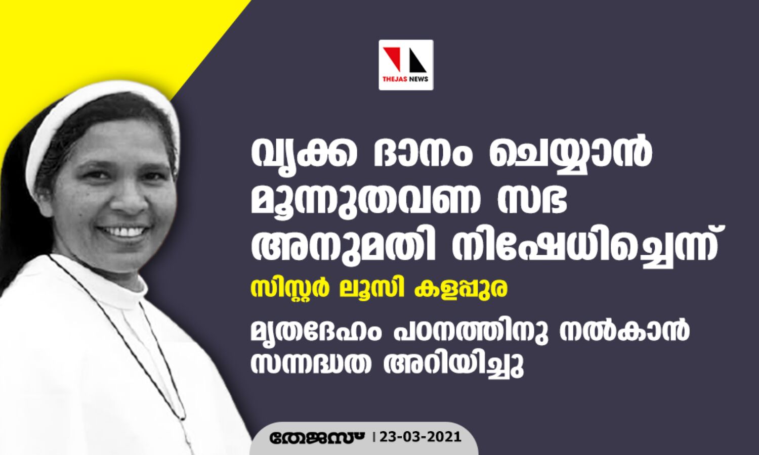 വൃക്ക ദാനം ചെയ്യാന് മൂന്നുതവണ സഭ അനുമതി നിഷേധിച്ചെന്ന് സിസ്റ്റര് ലൂസി കളപ്പുര