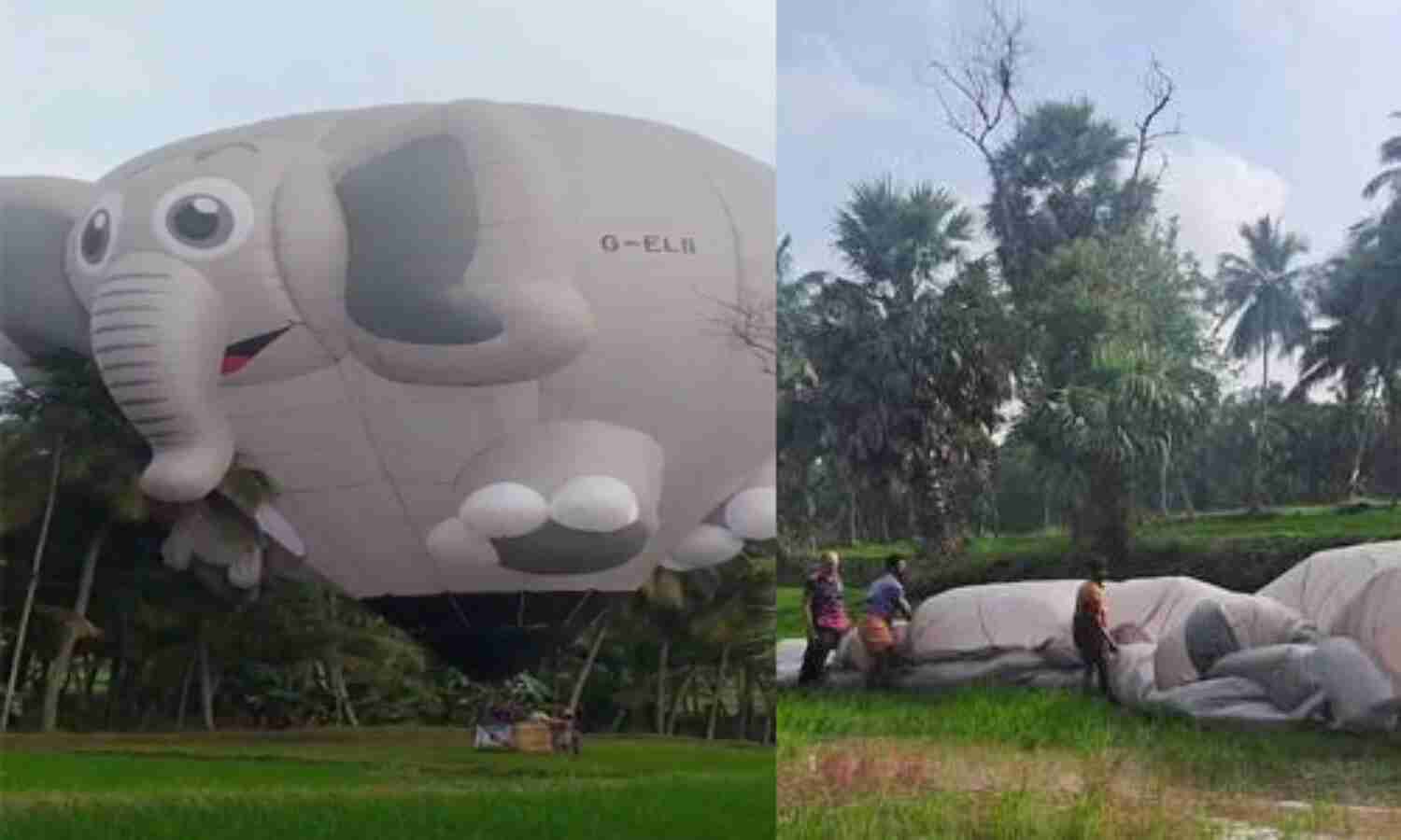 ഇന്ന് രാവിലെ എട്ട് മണിയോടെയാണ് സംഭവം. വലിയ ശബ്ദം കേട്ട് കര്ഷകരായ കൃഷ്ണന്കുട്ടിയും രാമന്കുട്ടിയും പാടത്തേക്കിറങ്ങിയപ്പോഴാണ് ആനയുടെ രൂപത്തിലുളള ഭീമന് ബലൂണ് കൃഷിയിടത്തിലേക്കിറങ്ങാന് പാകത്തിന് താഴെക്കിറങ്ങി വരുന്നതായി ശ്രദ്ധയില്പ്പെട്ടത്. ഇതോടെ ഇരുവരും അവരെ സഹായിച്ചു. വിവരമറിഞ്ഞ് ബലൂണ് കമ്പനി സ്ഥലത്തെത്തി ബലൂണ് ചുരുട്ടിയെടുത്ത് കൊണ്ടുപോയി.