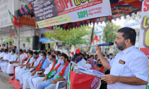 എറണാകുളം ടൗണ് ഹാളിന് സമീപം നടന്ന പ്രതിഷേധ ധര്ണ എസ് ഡി പി ഐ സംസ്ഥാന സെക്രട്ടറി പി ആര് സിയാദ് ഉദ്ഘാടനം ചെയ്തു