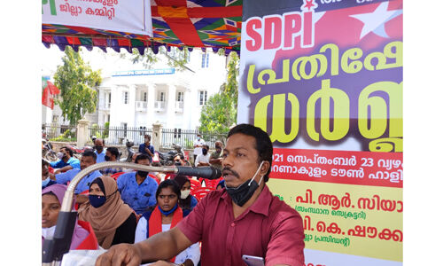 എസ്ഡിപിഐ സംസ്ഥാന വ്യാപകമായി സെക്രട്ടറിയേറ്റിന് മുന്നിലും ജില്ലാ കേന്ദ്രങ്ങളിലും നടതതിയ പ്രതിഷേധ ധര്ണയുടെ ഭാഗമായാണ് എസ്ഡിപിഐ എറണാകുളം ജില്ലാ കമ്മിറ്റി പ്രതിഷേധ ധര്ണ സംഘടിപ്പിച്ചത്.ജില്ലാ പ്രസിഡന്റ് വി കെ ഷൗക്കത്ത് അലി അധ്യക്ഷത വഹിച്ചു.