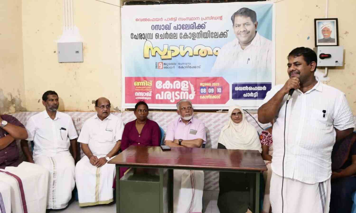 പരിപാടിയില് വെല്ഫെയര് പാര്ട്ടി ദേശീയ സെക്രട്ടറി ഇ സി ആയിഷ, സംസ്ഥാന സെക്രട്ടറിമാരയ ഉഷാ കുമാരി, ചന്ദ്രിക കൊയിലാണ്ടി, ജില്ലാ ജനറല് സെക്രട്ടറി മുസ്തഫ പാലായി, ജില്ലാ കമ്മിറ്റിയംഗം വി കെ റഷീദ് മാസ്റ്റര് അധ്യക്ഷത വഹിച്ചു. ജില്ലാ കമ്മിറ്റിയംഗം പി ടി വേലായുധന്, വിമന് ജസ്റ്റീസ് മൂവ്മെന്റ് പ്രതിനിധി പവിത, ചേര്മല കോളനി കോഡിനേറ്റര് രാഹുല് തുടങ്ങിയവര് സംസാരിച്ചു. പരിപാടിക്ക് സിറാജ് മാസ്റ്റര്, വി പി അസീസ്, അമീന് മുയിപ്പോത്ത്, ഷൈമ, അനില. പി സി എന്നിവര് നേതൃത്വം നല്കി. പേരാമ്പ്ര മണ്ഡലം പ്രസിഡിഎന്റ് എം ടി അഷ്റഫ് സ്വാഗതവും വി എം നൗഫല് പേരാമ്പ്ര നന്ദിയും പറഞ്ഞു.