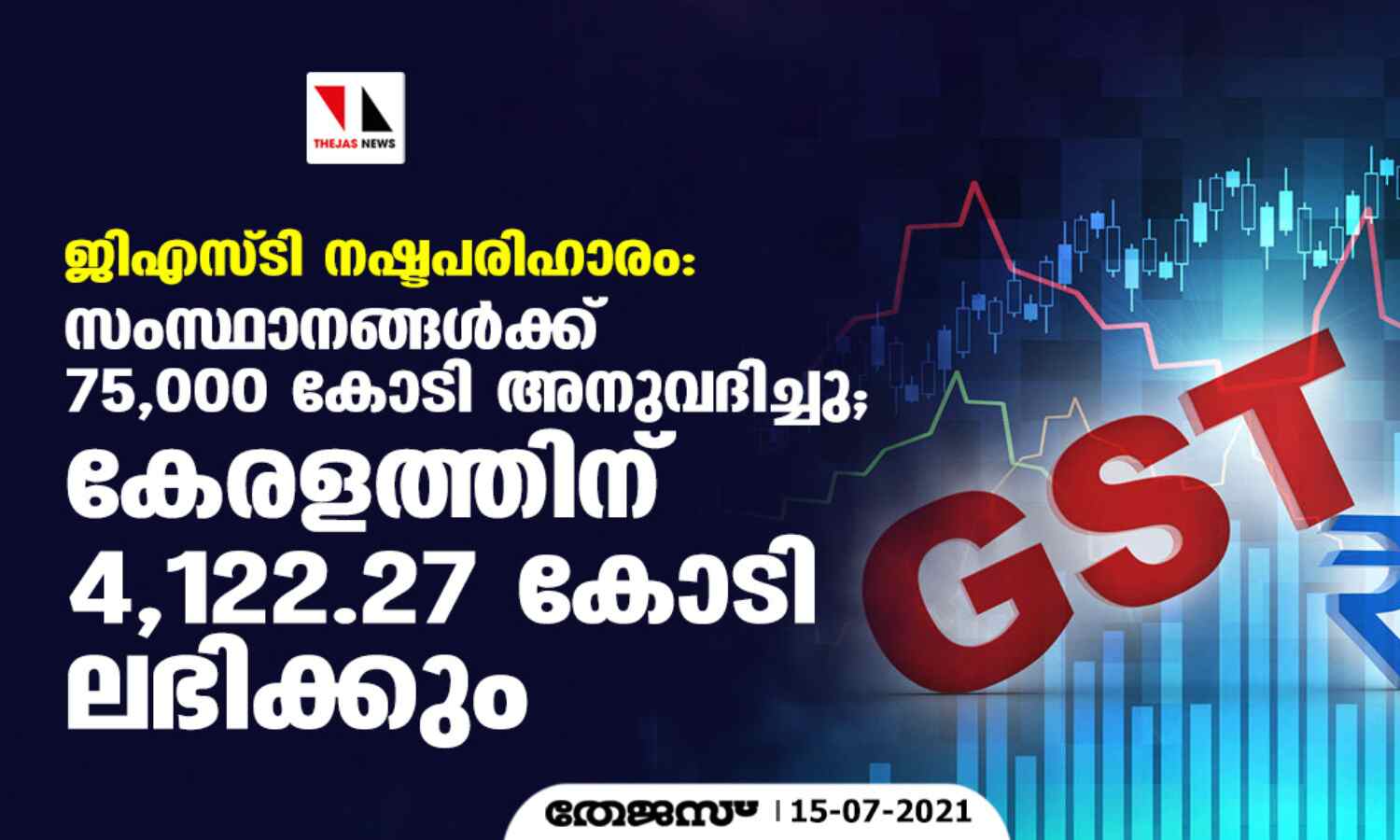 ജിഎസ്ടി നഷ്ടപരിഹാരം: സംസ്ഥാനങ്ങള്ക്ക് 75,000 കോടി അനുവദിച്ചു; കേരളത്തിന് 4,122.27 കോടി ലഭിക്കും