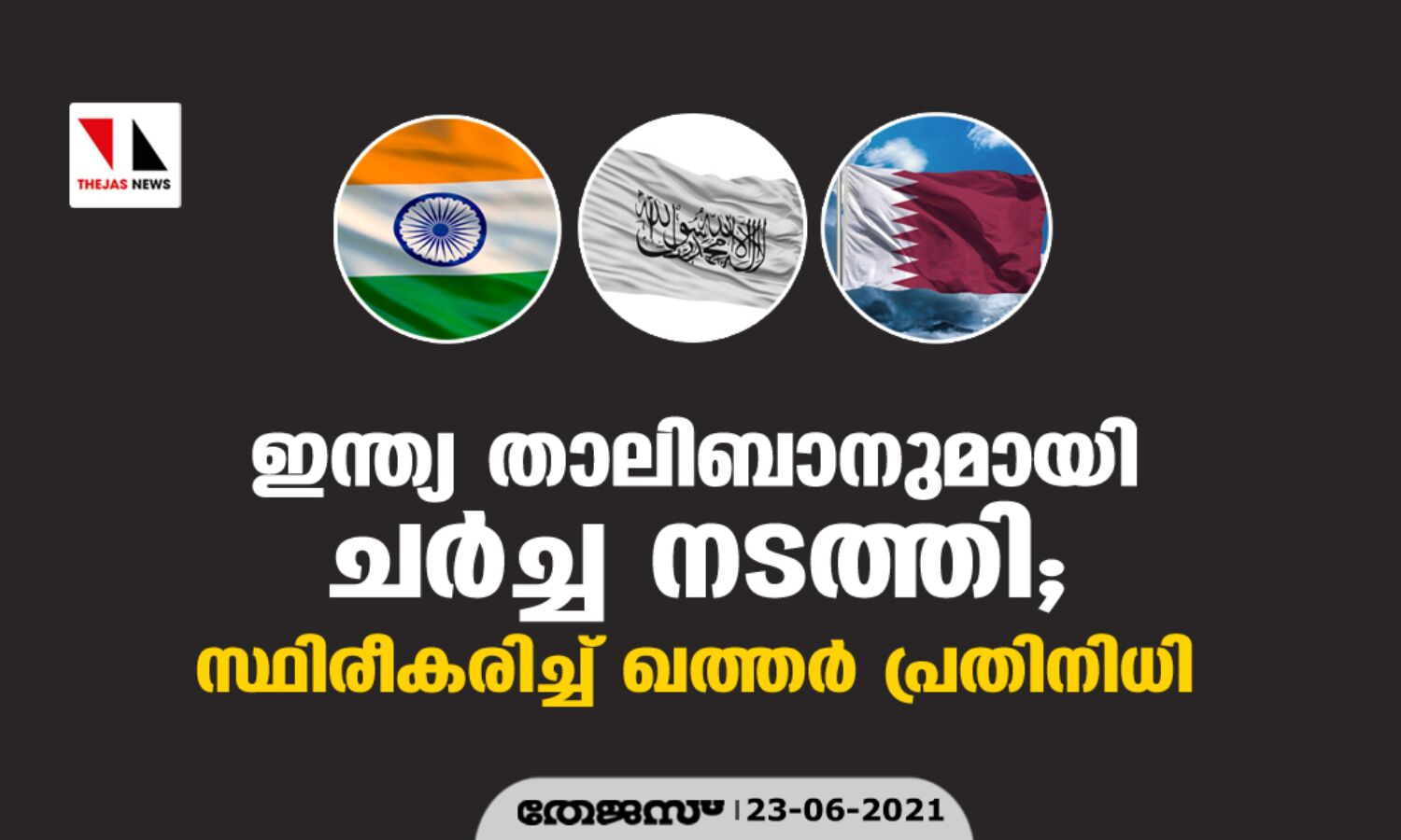 ഇന്ത്യ താലിബാനുമായി ചര്ച്ച നടത്തി; സ്ഥിരീകരിച്ച് ഖത്തര് പ്രതിനിധി