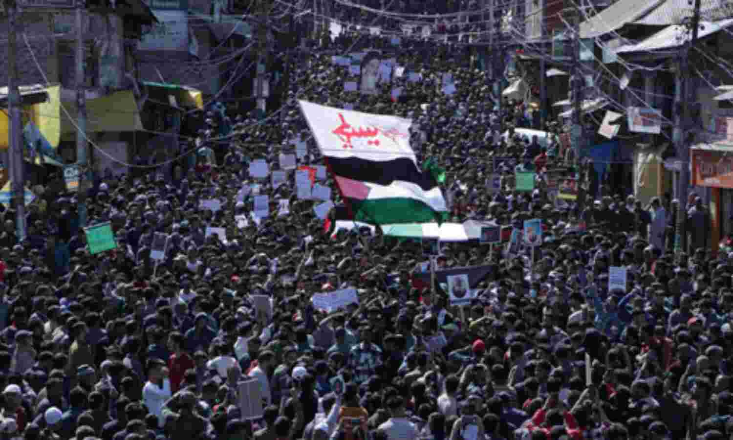 Thousands in Budgam, Kashmir mark International Quds Day, showing solidarity with Palestine.