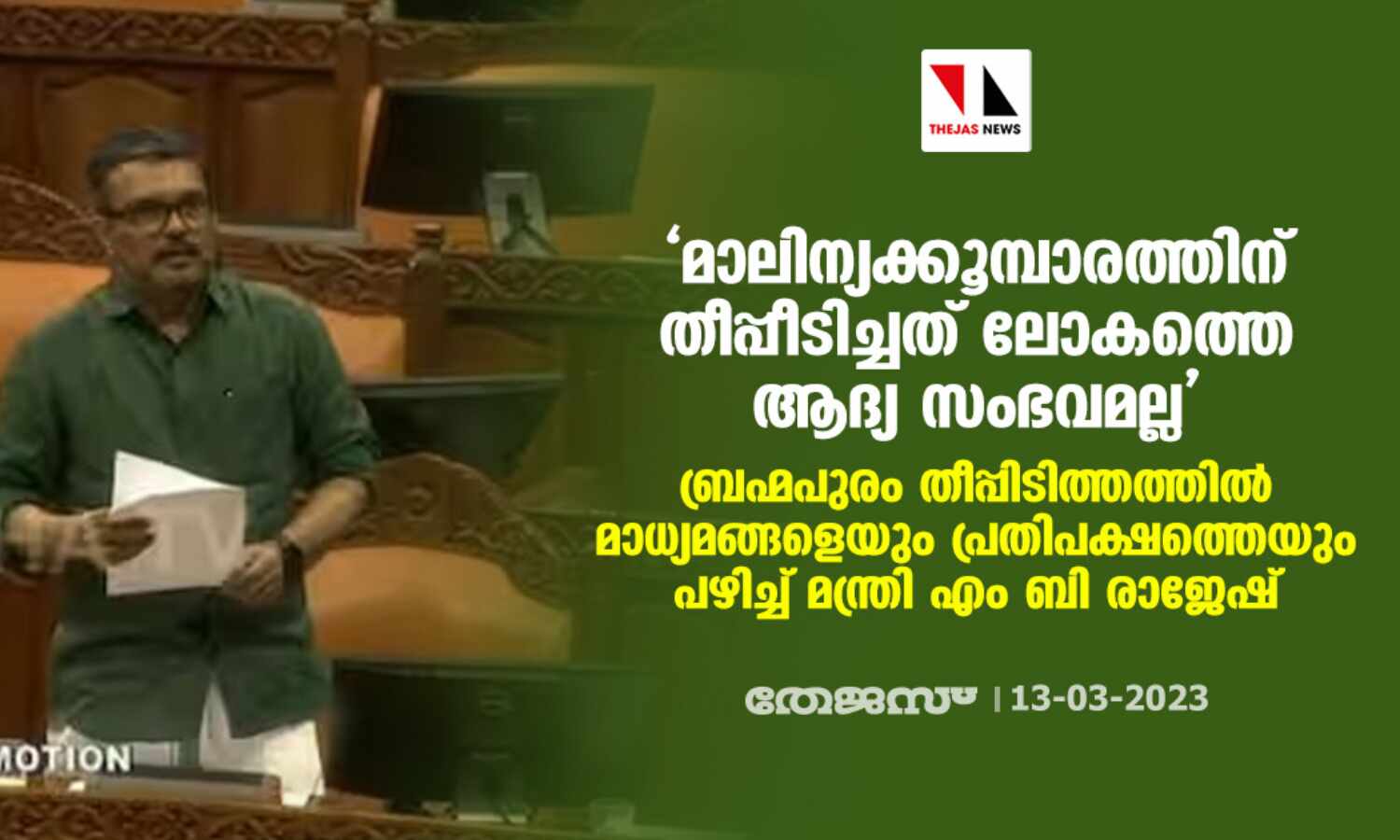 'മാലിന്യക്കൂമ്പാരത്തിന് തീപ്പീടിച്ചത് ലോകത്തെ ആദ്യ സംഭവമല്ല'; ബ്രഹ്മപുരം തീപ്പിടിത്തത്തില് മാധ്യമങ്ങളെയും പ്രതിപക്ഷത്തെയും പഴിച്ച് മന്ത്രി എം ബി രാജേഷ്