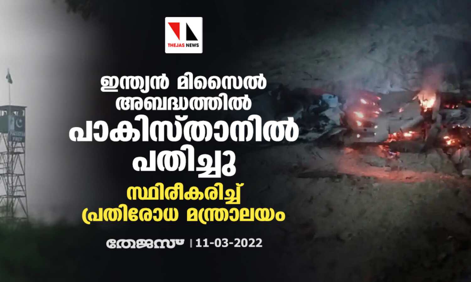 ഇന്ത്യന് മിസൈല് അബദ്ധത്തില് പാകിസ്താനില് പതിച്ചു; സ്ഥിരീകരിച്ച് പ്രതിരോധ മന്ത്രാലയം