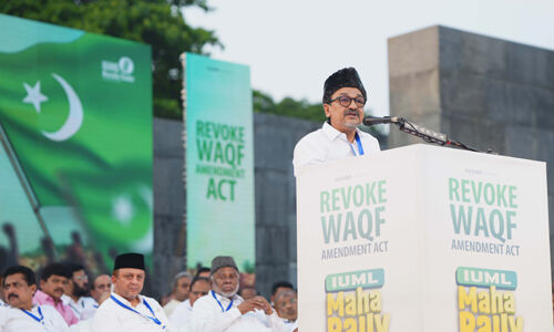 അതേസമയം സംസ്ഥാന സര്ക്കാരിനെതിരെയും വിമര്ശനമുയര്ന്നു. കുറുക്കന്റെ കണ്ണുമായി രാഷ്ട്രീയ ലാഭം നോക്കിയിരിക്കുകയാണ് പിണറായി സര്ക്കാര് എന്നായിരുന്നു പി.കെ. കുഞ്ഞാലിക്കുട്ടിയുടെ വിമര്ശനം. തിരഞ്ഞെടുപ്പ് വരെ മുനമ്പത്തെ പ്രശ്നം നീട്ടിക്കൊണ്ടുപോകാനാണ് ശ്രമമെന്നും നിലമ്പൂര് തിരഞ്ഞെടുപ്പില് എല്ഡിഎഫ് തോറ്റു തുന്നം പാടുമെന്നും കുഞ്ഞാലിക്കുട്ടി പ്രസംഗത്തില് പറഞ്ഞു. ബിജെപി വഖ്ഫിനെക്കുറിച്ച് നുണപ്രചാരണം നടത്തുന്നുവെന്ന് കര്ണാടക മന്ത്രി കൃഷ്ണ ഭൈര പറഞ്ഞു. അതേസമയം, കോണ്ഗ്രസില് നിന്ന് ക്ഷണമുണ്ടായിരുന്ന വി ഡി സതീശനും പഞ്ചാബ് പിസിസി അധ്യക്ഷന് അമരീന്ദര് സിങ് രാജയും പരിപാടിക്ക് എത്തിയില്ല. വി ഡി സതീശന് ആരോഗ്യപ്രശ്നങ്ങള് കാരണമാണ് വരാതിരുന്നതെന്നാണ് നേതാക്കള് വ്യക്തമാക്കിയത്. അമരീന്ദര് സിങ് രാജയുടെ സ്ഥാപനങ്ങള്ക്കെതിരെ ഇ.ഡി സമന്സ് നല്കിയെന്നും അതുമായി ബന്ധപ്പെട്ട തിരക്കുകള് കൊണ്ടാണ് എത്താതിരുന്നതെന്നും ലീഗ് സംസ്ഥാന ജനറല് സെക്രട്ടറി പി എം എ. സലാമും വ്യക്തമാക്കി.