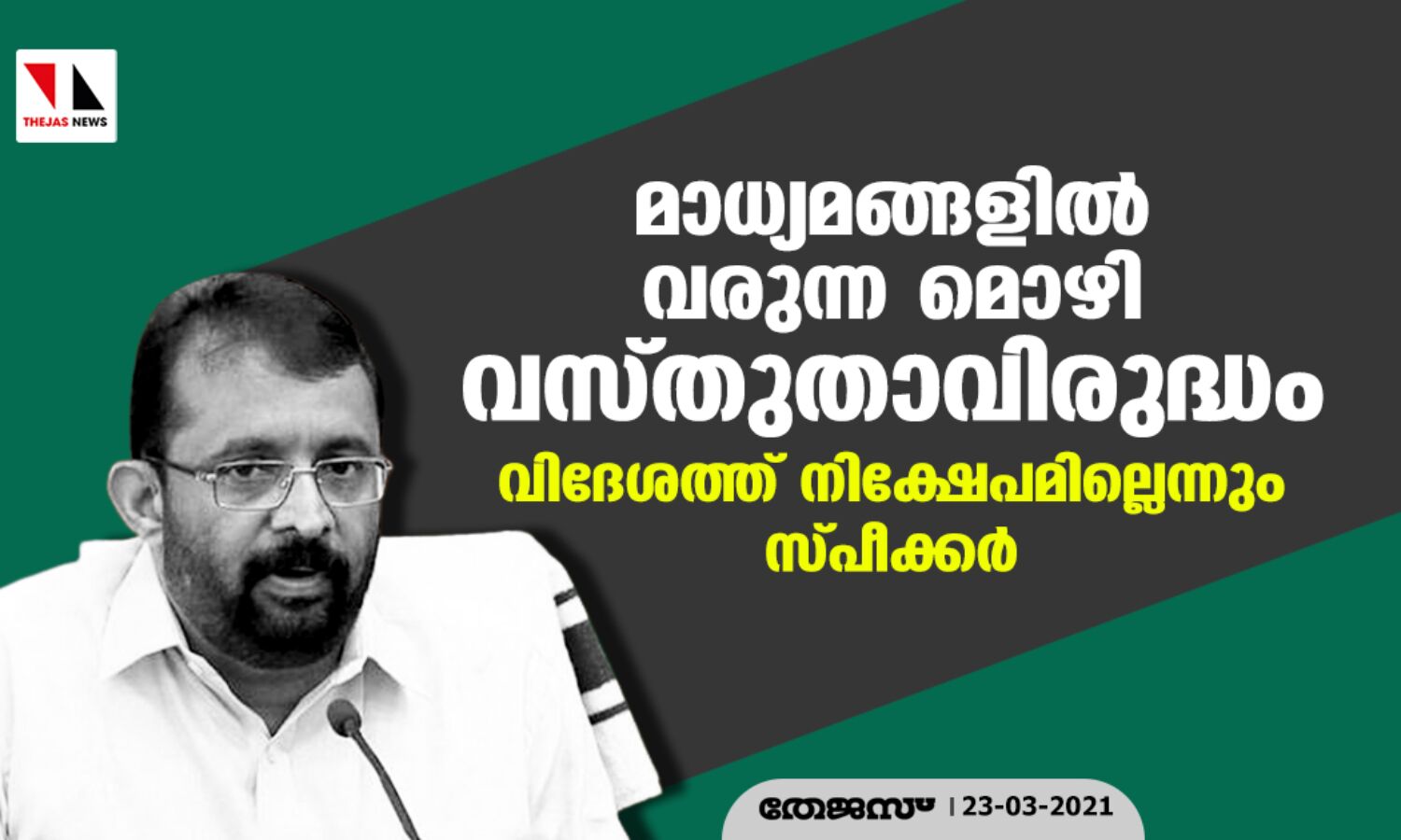 മാധ്യമങ്ങളില് വരുന്ന മൊഴി വസ്തുതാവിരുദ്ധം; വിദേശത്ത് നിക്ഷേപമില്ലെന്നും സ്പീക്കര്