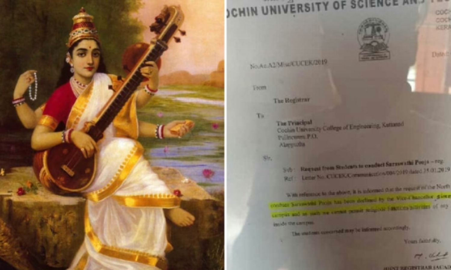 കാംപസില് മതാചാരങ്ങള് അനുവദിക്കാനാവില്ല; കുസാറ്റില് ഉത്തരേന്ത്യന് വിദ്യാര്ഥികളുടെ സരസ്വതിപൂജ വേണ്ടെന്ന് ചാന്സലര്