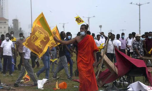 1948 ല് ബ്രിട്ടന്റെ അധീനതയില് നിന്ന് സ്വാതന്ത്ര്യം നേടിയ ശേഷം രാജ്യം നേരിടുന്ന ഏറ്റവും വലിയ സാമ്പത്തിക പ്രതിസന്ധിയില് സര്ക്കാരിനെതിരായ പ്രതിഷേധമാണ് കലാപത്തിലേക്കും കൊള്ളിവയ്പ്പിലേക്കും നീങ്ങിയത്. പ്രധാനമന്ത്രിയുടെ ഔദ്യോഗിക വസതിയിലേക്ക് തള്ളിക്കയറാന് ശ്രമിച്ച ജനക്കൂട്ടത്തിന് നേരേ പോലിസ് ടിയര് ഗ്യാസ് പ്രയോഗിച്ചു. രാജ്യത്തിന്റെ പല ഭാഗത്തും യുദ്ധസമാനമായ പ്രതിസന്ധിയാണുള്ളത്.