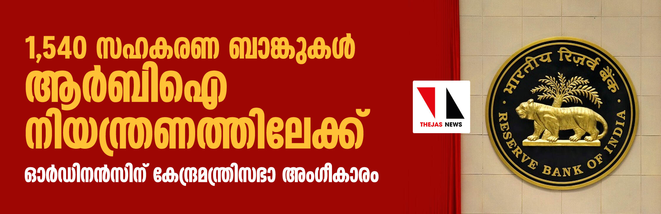 1,540 സഹകരണ ബാങ്കുകള് ആര്ബിഐ നിയന്ത്രണത്തിലേക്ക്; ഓര്ഡിനന്സിന് കേന്ദ്രമന്ത്രിസഭാ അംഗീകാരം
