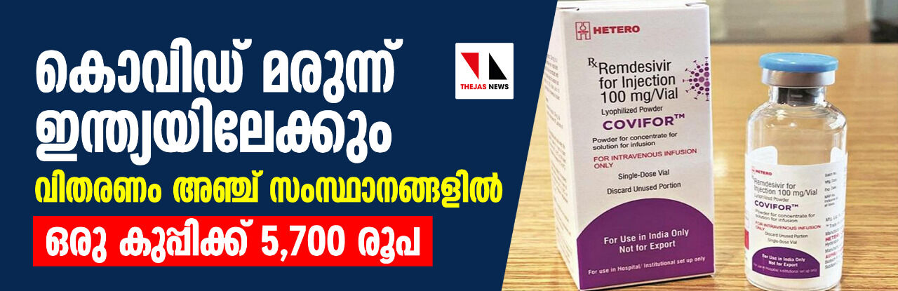 കൊവിഡ് മരുന്ന് ഇന്ത്യയിലേക്കും: വിതരണം അഞ്ച് സംസ്ഥാനങ്ങളില്; ഒരു കുപ്പിക്ക് 5,700 രൂപ