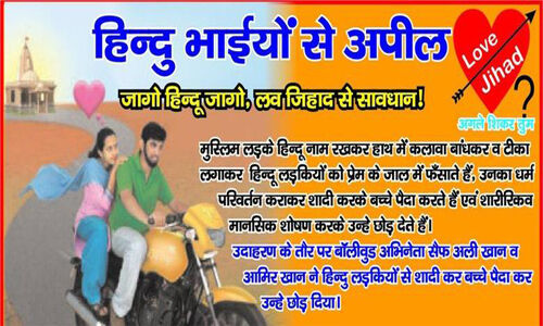 സംഘപരിവാറിന് സാമൂഹ്യ മാധ്യമങ്ങളില് വ്യാജ സംഭവങ്ങള് പ്രചരിപ്പിക്കാന് എണ്ണയിട്ട യന്ത്രം പോലെ പ്രവര്ത്തിക്കാന് സംവിധാനമുണ്ട്. ഹിന്ദുക്കളെ മതം മാറ്റാന് മദ്റസകള്ക്ക് മുസ്ലിം രാജ്യങ്ങള് പണമൊഴുക്കുന്നു എന്നാണ് പ്രചാരണം. ഹിന്ദുപെണ്കുട്ടികളെ വശീകരിക്കാന് സുന്ദരന്മാരായ യുവാക്കളെ പരിശീലിപ്പിക്കുന്നു. തിളങ്ങുന്ന വസ്ത്രം ധരിക്കാനും മദ്റസകള് പരിശീലനം നല്കുന്നതിനൊപ്പം ബൈക്കും മൊബൈല് ഷോപ്പുകളും ഇവര്ക്കും തരപ്പെടുത്തിക്കൊടുക്കുന്നു.