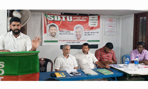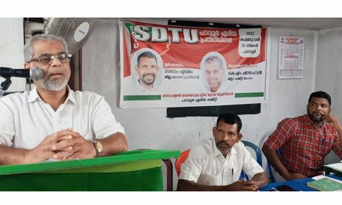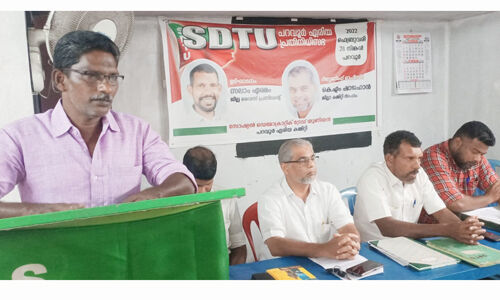വാണിയക്കാട് പ്രത്യാശ സെന്ററില് നടന്ന പ്രതിനിധി സംഗമം സോഷ്യല് ഡെമോക്രാറ്റിക് ട്രേഡ് യൂനിയന്(എസ്ഡിറ്റിയു) പറവൂര് ഏരിയ പ്രതിനിധി സംഗമം ജില്ലാ വൈസ് പ്രസിഡന്റ് സലാം എരമം ഉദ്ഘാടനം ചെയ്തു