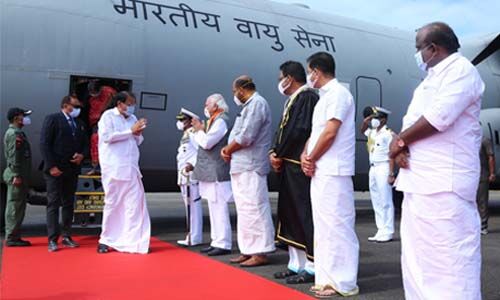 കൊച്ചി: ലക്ഷദ്വീപ് സന്ദര്ശനത്തിന് ശേഷം കൊച്ചിയില് തിരിച്ചെത്തിയ ഉപരാഷ്ട്രപതി എം വെങ്കയ്യ നായിഡുവിന് നാവികസേനാ വിമാനത്താവളത്തില് ഊഷ്മള സ്വീകരണം.