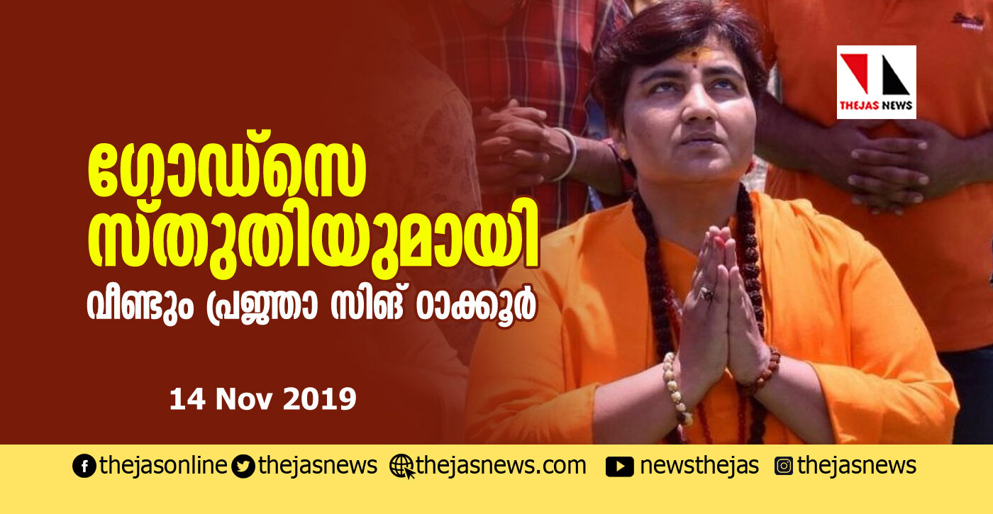 കഴിഞ്ഞ ലോക്സഭ തിരഞ്ഞെടുപ്പ് കാലത്തും അവര് ഗോഡ്സെയെ പ്രകീര്ത്തിച്ചും രാജ്യസ്നേഹിയെന്നു വിളിച്ചും വിവാദം സൃഷ്ടിച്ചിരുന്നു. ആഗ്ര-മല്വ ജില്ലയില് തിരഞ്ഞെടുപ്പ് പ്രചാരണത്തിനിടയിലായിരുന്നു ഗോഡ്സെ സ്തുതി. അതിനെതിരേ രാജ്യം മുഴുവന് പ്രതിഷേധമുയര്ന്ന സാഹചര്യത്തില് മോദി തന്നെ രംഗത്തുവന്നു. ഗാന്ധിയെ അപകീര്ത്തിപ്പെടുത്തിയ പ്രജ്ഞാ സിങ്ങിനോട് പൊറുക്കില്ലെന്നും മോദിക്ക് പറയേണ്ടിവന്നു.
