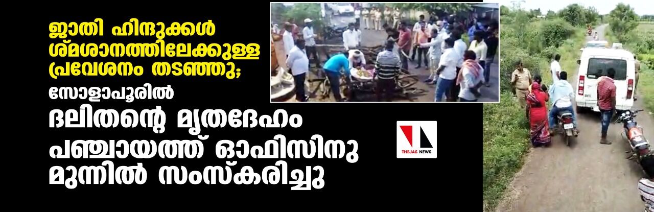 ജാതി ഹിന്ദുക്കള് ശ്മശാനത്തിലേക്കുള്ള പ്രവേശനം തടഞ്ഞു; സോളാപൂരില് ദലിതന്റെ മൃതദേഹം പഞ്ചായത്ത് ഓഫിസിനു മുന്നില് സംസ്കരിച്ചു