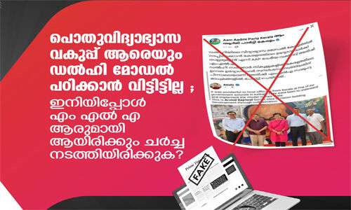 ആംആദ്മി ദേശീയ വക്താവ് അതിഷി എംഎല്എയുടെ പോസ്റ്റ് പങ്കുവച്ചായിരുന്നു ഡല്ഹിയിലെ സ്കൂളുകള് കേരളത്തിലെ ഉദ്യോഗസ്ഥര് സന്ദര്ശിച്ചെന്ന് ആംആദ്മി പറഞ്ഞിരുന്നത്.
