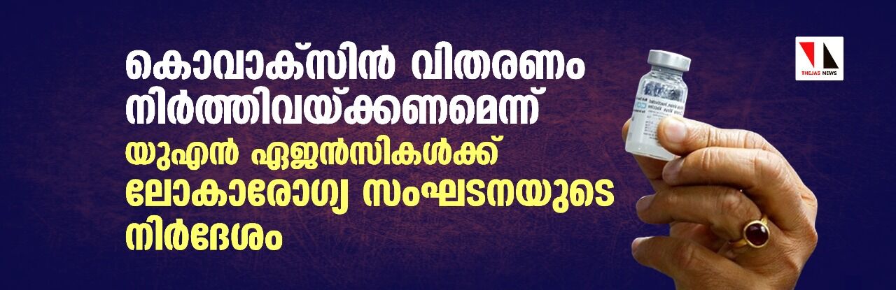കൊവാക്സിന് വിതരണം നിര്ത്തിവയ്ക്കണമെന്ന് യുഎന് ഏജന്സികള്ക്ക് ലോകാരോഗ്യസംഘടനയുടെ നിര്ദേശം