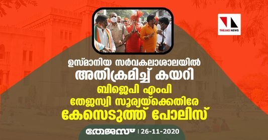 ഉസ്മാനിയ സര്വകലാശാലയില് അതിക്രമിച്ച് കയറി; ബിജെപി എംപി തേജസ്വി സൂര്യയ്ക്കെതിരേ കേസെടുത്ത് പോലിസ്
