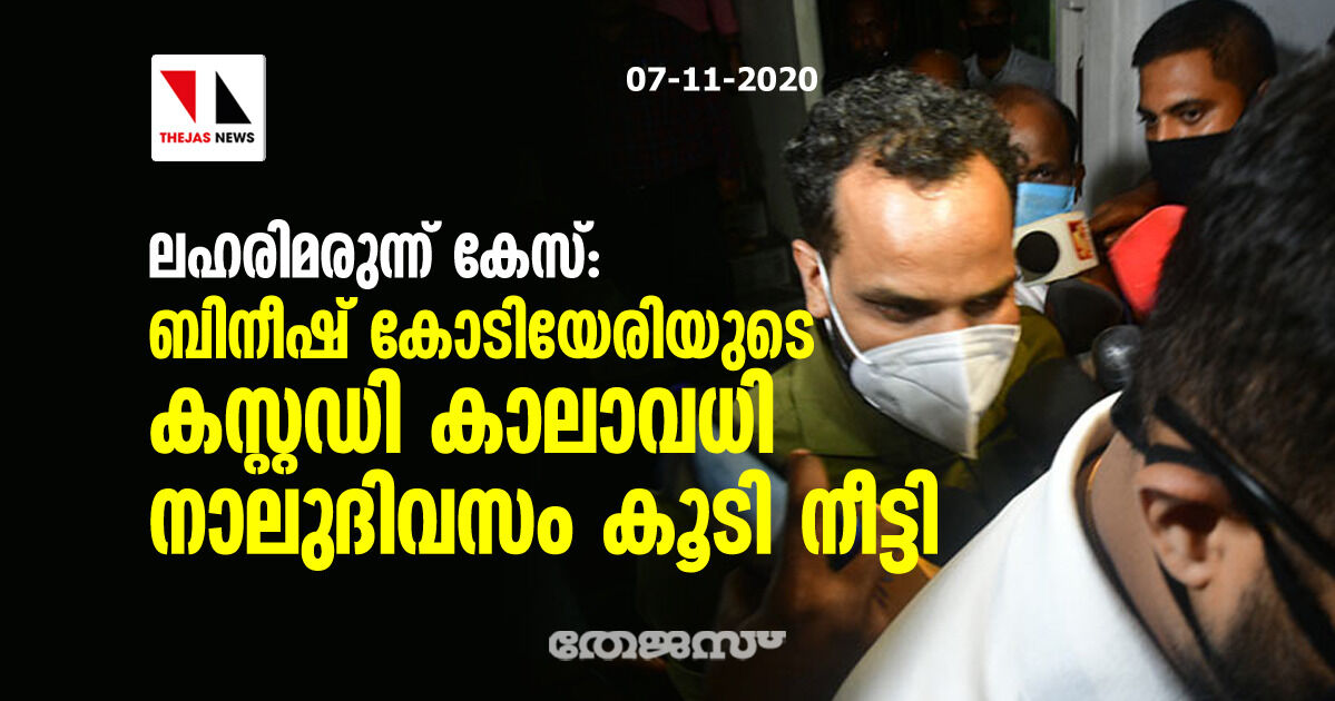 ലഹരിമരുന്ന് കേസ്: ബിനീഷ് കോടിയേരിയുടെ കസ്റ്റഡി കാലാവധി നാലുദിവസം കൂടി നീട്ടി