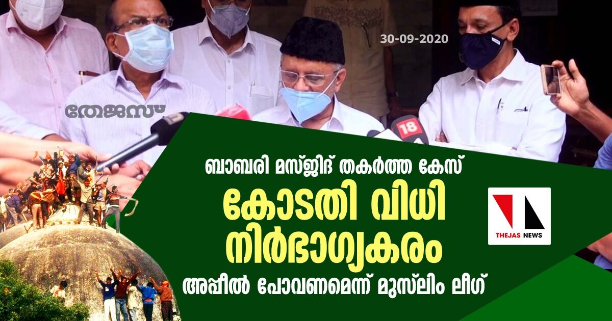 ബാബരി മസ്ജിദ് തകര്ത്ത കേസ്: കോടതി വിധി നിര്ഭാഗ്യകരം; അപ്പീല് പോവണമെന്ന് മുസ്ലിം ലീഗ്