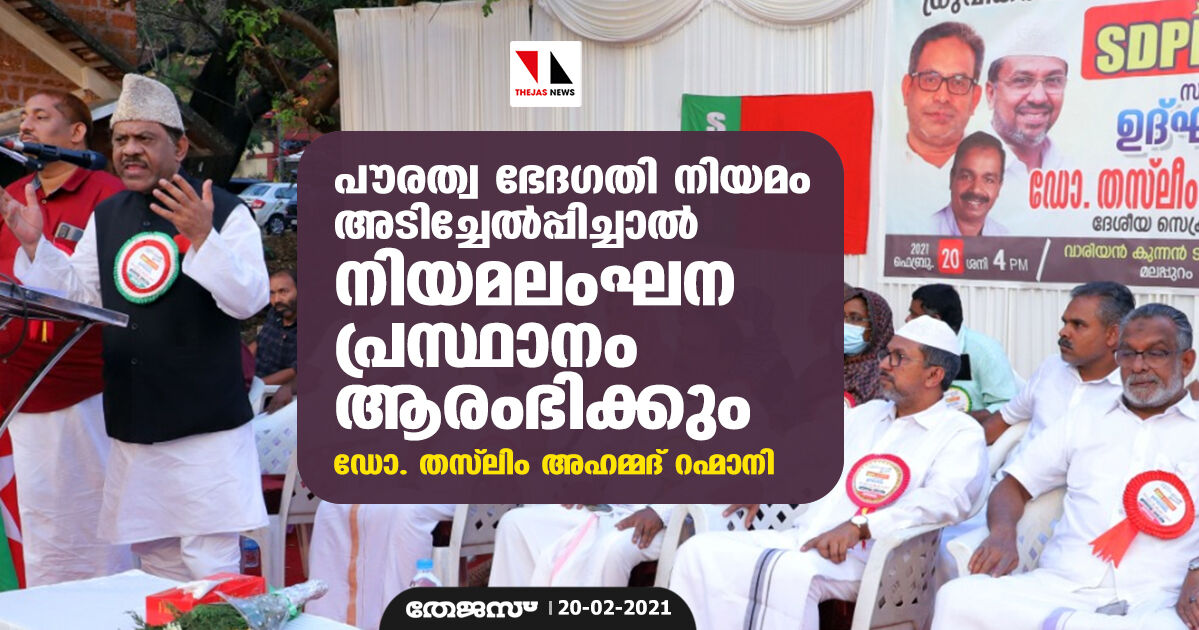 പൗരത്വ ഭേദഗതി നിയമം അടിച്ചേല്പ്പിച്ചാല് നിയമലംഘന പ്രസ്ഥാനം ആരംഭിക്കും: ഡോ. തസ്ലിം അഹമ്മദ് റഹ്മാനി