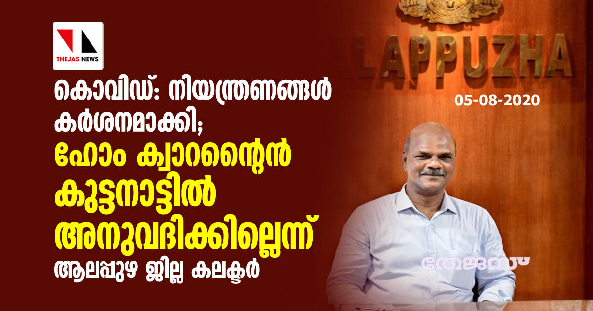കൊവിഡ് : നിയന്ത്രണങ്ങള് കര്ശനമാക്കി; ഹോം ക്വാറന്റൈന് കുട്ടനാട്ടില് അനുവദിക്കില്ലെന്ന് ആലപ്പുഴ ജില്ല കലക്ടര്