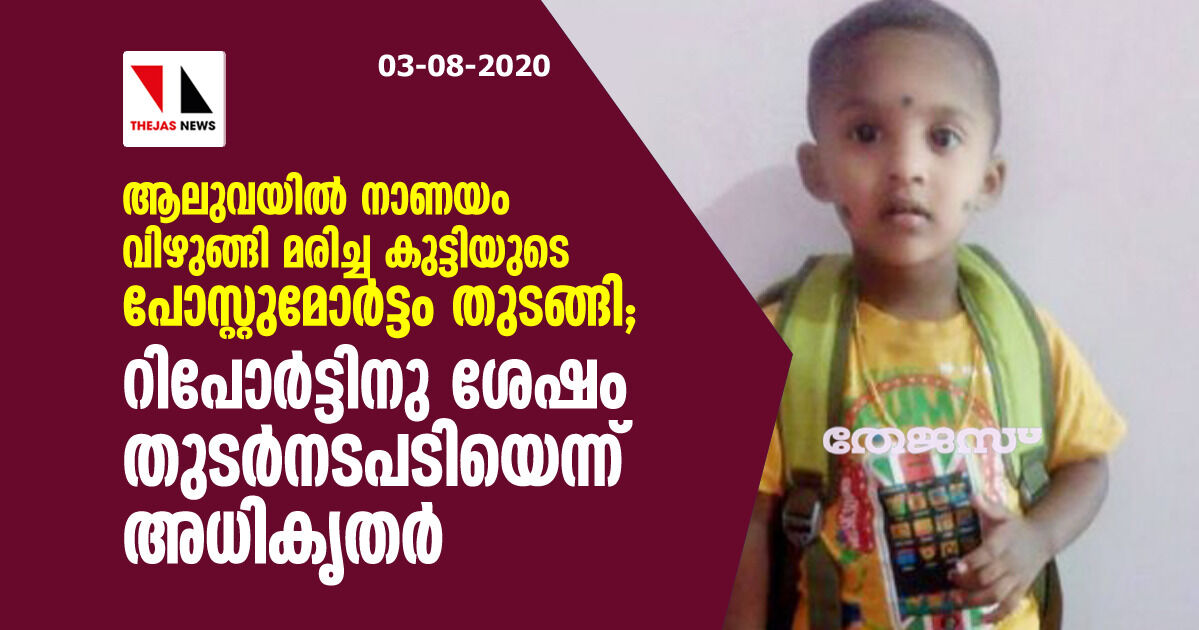 ആലുവയില് നാണയം വിഴുങ്ങി മരിച്ച കുട്ടിയുടെ പോസ്റ്റുമോര്ട്ടം തുടങ്ങി;റിപോര്ടിനു ശേഷം തുടര് നടപടിയെന്ന് അധികൃതര്