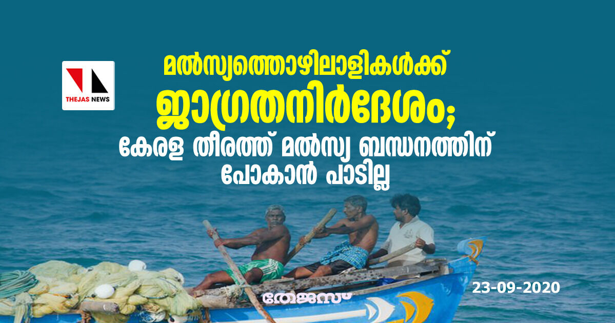 മല്സ്യ തൊഴിലാളികള്ക്ക് ജാഗ്രതാ നിര്ദ്ദേശം;കേരള തീരത്ത് മല്സ്യ ബന്ധനത്തിന് പോകാന് പാടില്ല