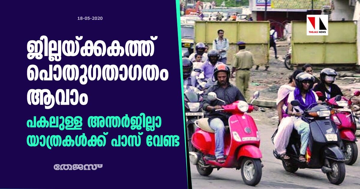 ജില്ലയ്ക്കകത്ത് പൊതുഗതാഗതം അനുവദിക്കും; പകലുള്ള അന്തർജില്ലാ യാത്രകൾക്ക് പാസ് വേണ്ട