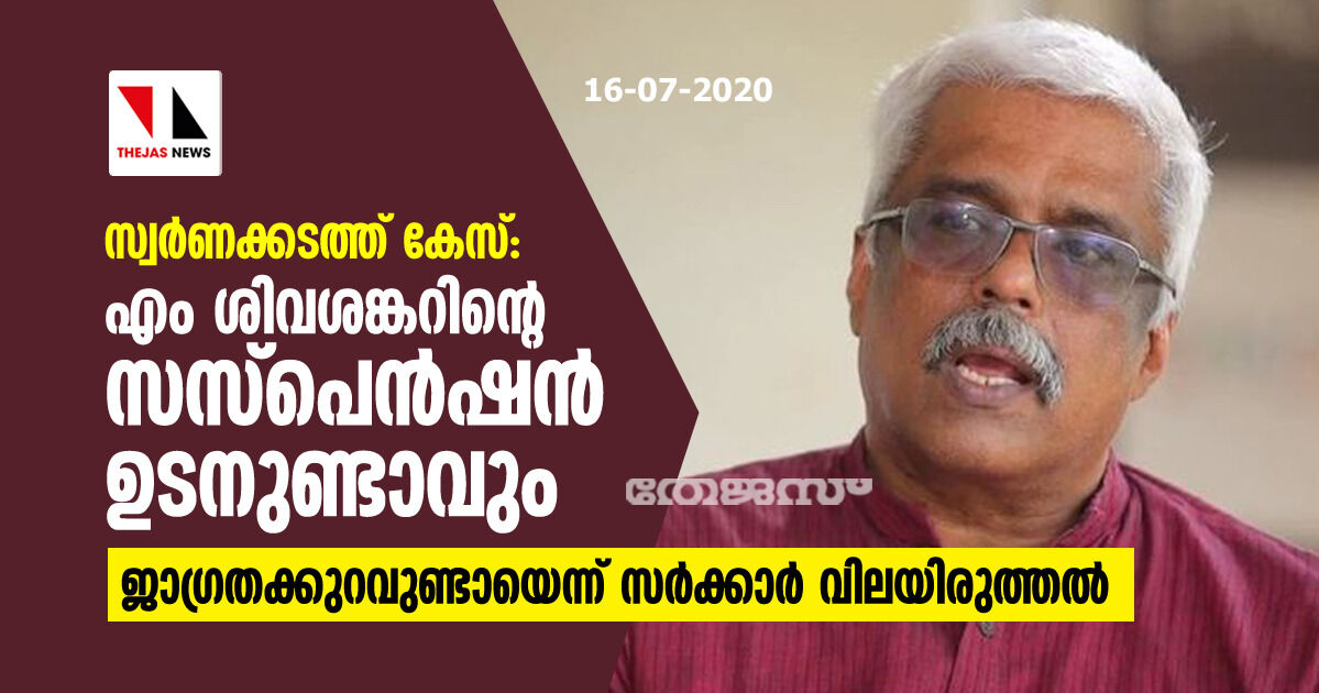 സ്വർണക്കടത്ത് കേസ്: എം ശിവശങ്കറിൻ്റെ സസ്പെൻഷൻ ഉടനുണ്ടാവും