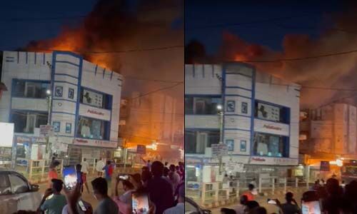 അപകടത്തില് ആറ് പേര്ക്ക് പൊള്ളലേറ്റു. മുകളിലെ നിലയില്നിന്ന് തീ ആളിപ്പടരുകയായിരുന്നു. അഗ്നിശമനസേനയുടെയും പോലിസിന്റെയും നേതൃത്വത്തില് തീയണയ്ക്കാനുള്ള ശ്രമം തുടരുകയാണ്. വലിയ നാശനഷ്ടമുണ്ടായതായാണ് കരുതുന്നത്. അതേസമയം, അപകടത്തിന്റെ കാരണം ഇതുവരെ കണ്ടെത്തിയിട്ടില്ല.