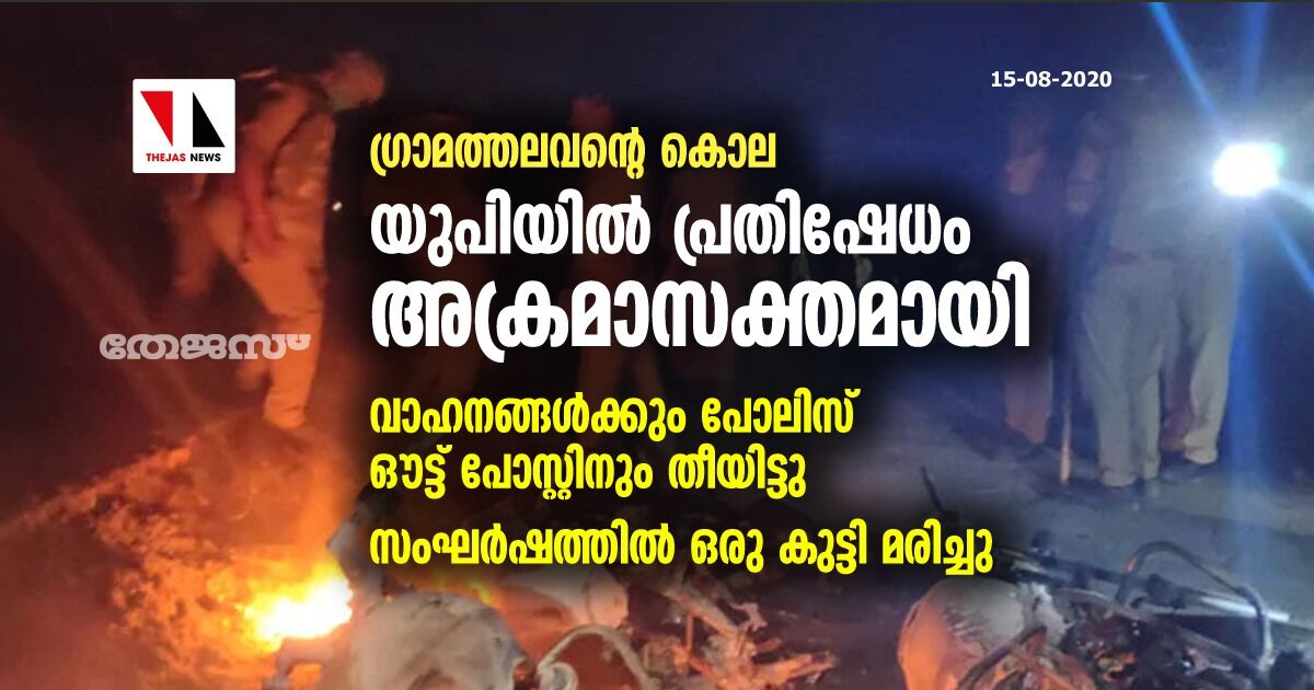 ഗ്രാമത്തലവന്റെ കൊല: യുപിയില് പ്രതിഷേധം അക്രമാസക്തമായി; വാഹനങ്ങള്ക്കും പോലിസ് ഔട്ട് പോസ്റ്റിനും തീയിട്ടു, സംഘര്ഷത്തില് ഒരു കുട്ടി മരിച്ചു