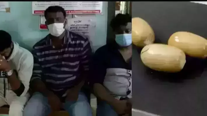 ഷാര്ജയില് നിന്നെത്തിയ മണ്ണാര്ക്കാട് സ്വദേശി വിഷ്ണുദാസ്, ബഹറെയിനില് നിന്നെത്തിയ വടകര സ്വദേശി ഷിജിത്ത് എന്നിവരാണ് സ്വര്ണം കടത്താന് ശ്രമിച്ചത്. ഇവരേയും ഇവരെ കൂട്ടിക്കൊണ്ടുപോകാനെത്തിയ ഷബീന്, ഷബീല്, ലത്തീഫ്, സലീം എന്നിവരേയും പോലിസ് കസ്റ്റഡിയിലെടുത്തു.