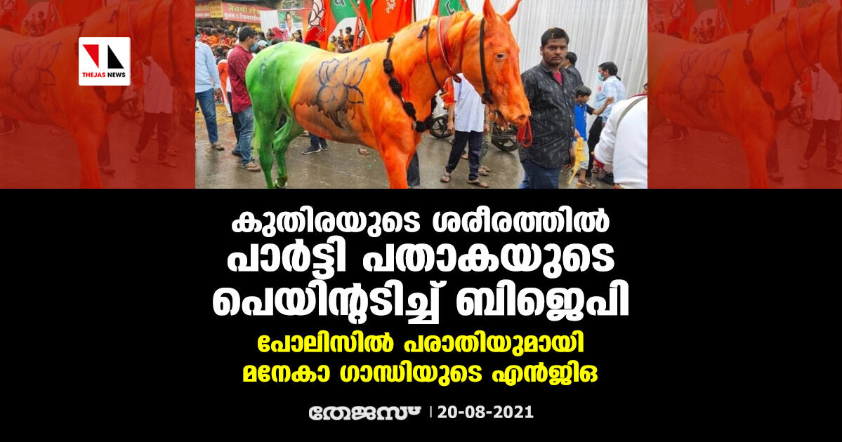 കുതിരയുടെ ശരീരത്തില് പാര്ട്ടി പതാകയുടെ പെയിന്റടിച്ച് ബിജെപി; പോലിസില് പരാതിയുമായി മനേകാ ഗാന്ധിയുടെ എന്ജിഒ