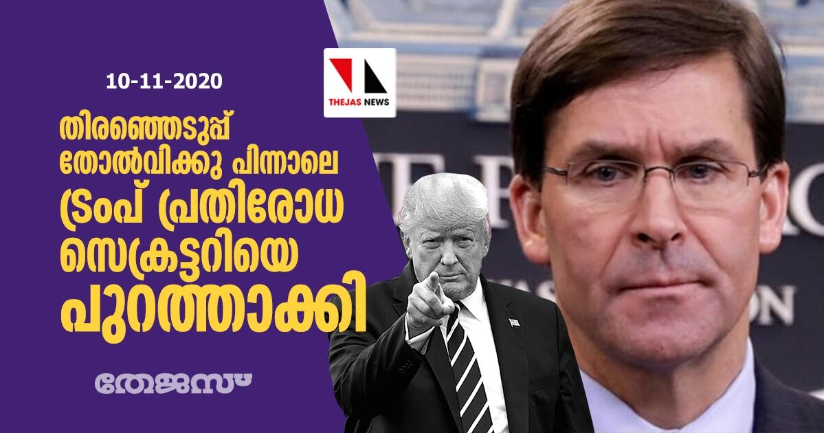 തിരഞ്ഞെടുപ്പ് തോല്വിക്കു പിന്നാലെ ട്രംപ് പ്രതിരോധ സെക്രട്ടറിയെ പുറത്താക്കി