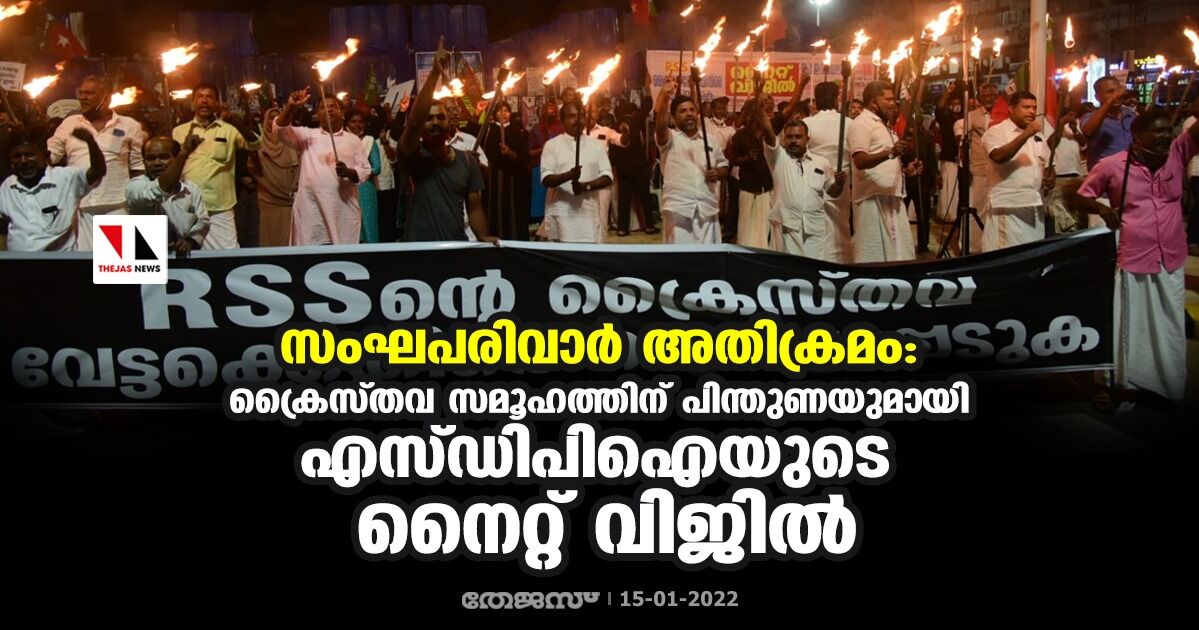 സംഘപരിവാര് അതിക്രമം: ക്രൈസ്തവ സമൂഹത്തിന് പിന്തുണയുമായി എസ്ഡിപി ഐയുടെ നൈറ്റ് വിജില്