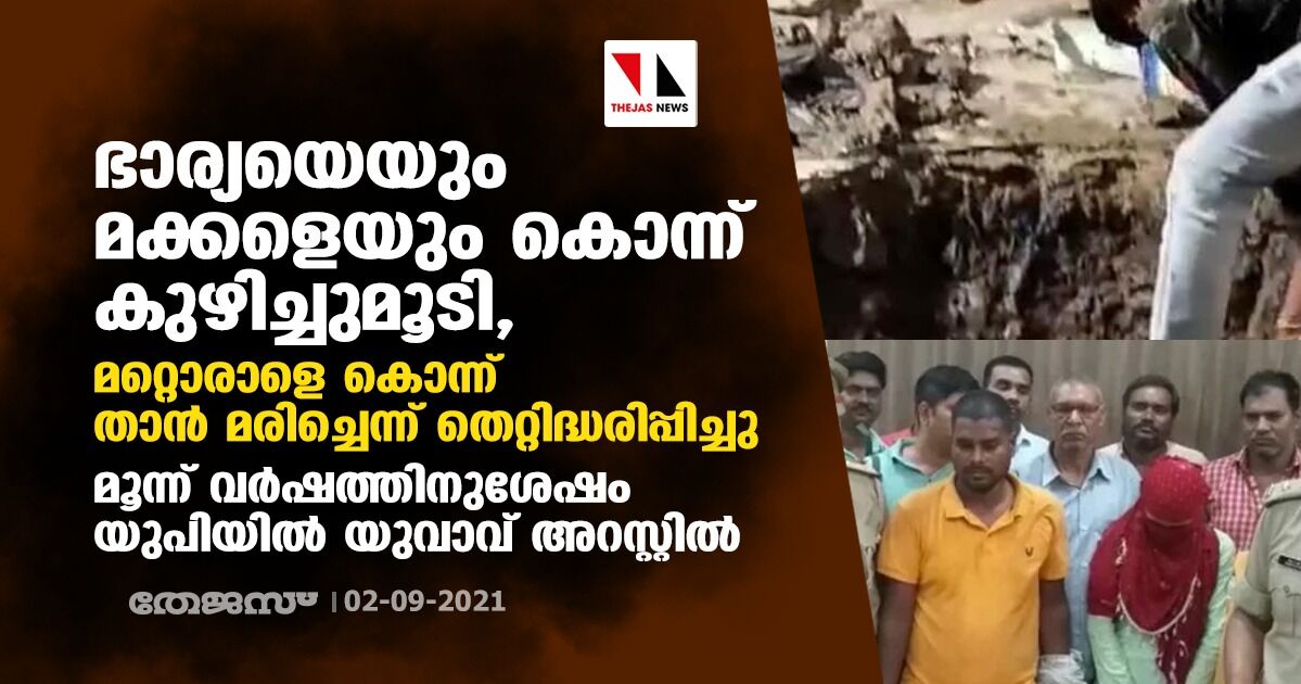 ഭാര്യയെയും മക്കളെയും കൊന്ന് കുഴിച്ചുമൂടി, മറ്റൊരാളെ കൊന്ന് താന് മരിച്ചെന്ന് തെറ്റിദ്ധരിപ്പിച്ചു; മൂന്ന് വര്ഷത്തിനുശേഷം യുപിയില് യുവാവ് അറസ്റ്റില്